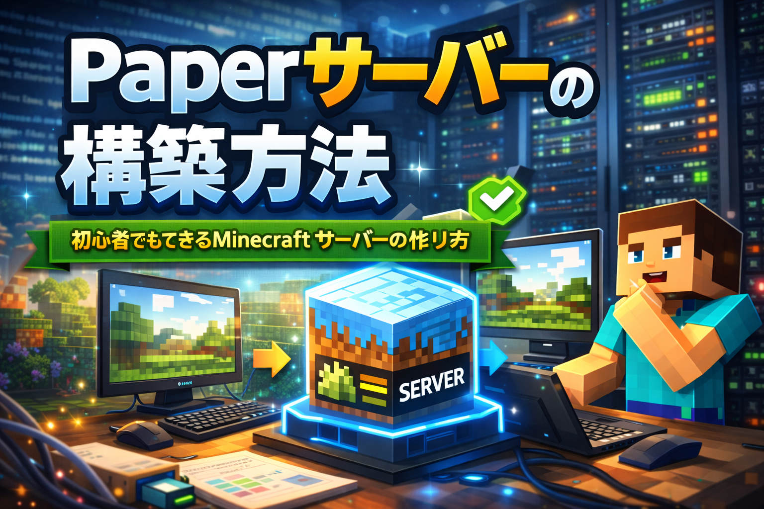 初心者でもできるMinecraftサーバーの作り方。この記事では、初めての人でもできるように、Paperサーバーの基本的な構築方法を順番に解説していきます。