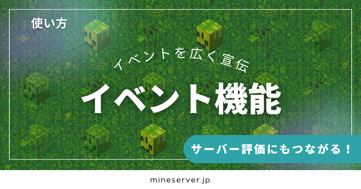 MineserverJPのイベント機能について説明する記事です。サーバー運営をしている皆様は、サーバー内で開催するイベントを広く宣伝したい!イベントというからには、より多くのプレイヤーを集めたい!そんな時に、イベント機能をご活用いただ...